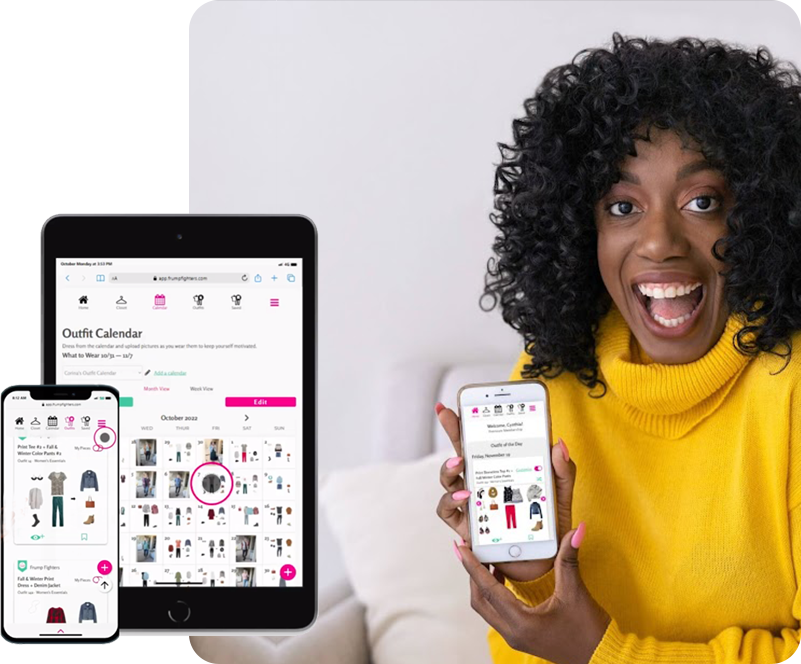 Frump Fighters® is made to help you get the benefits of style confidence without needing fashion skills. We guide you step-by-step so you can stop guessing and start feeling good in what you wear.