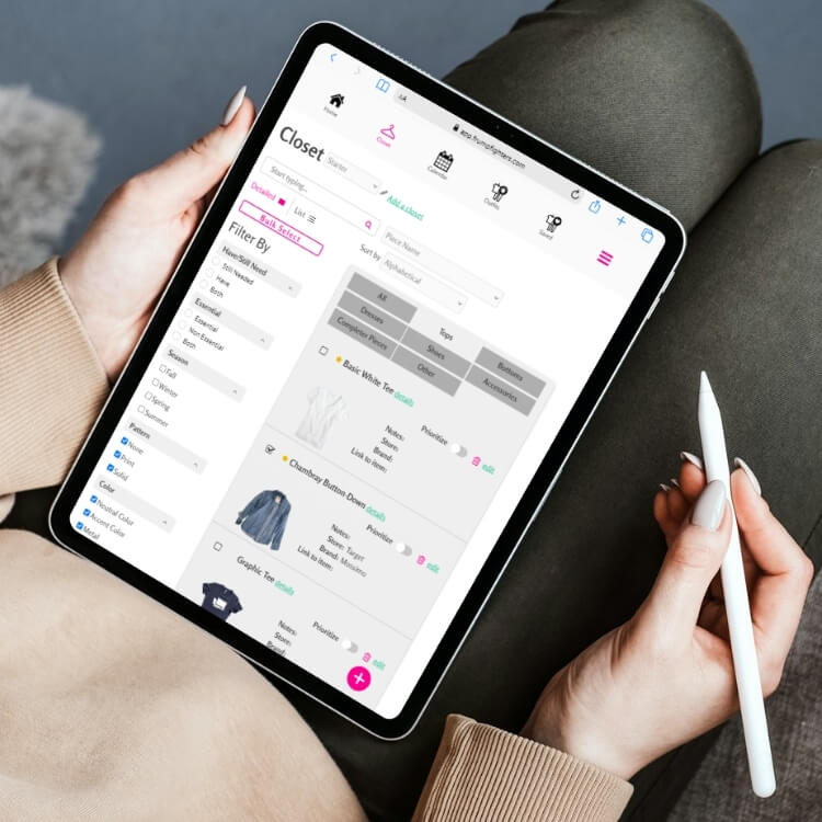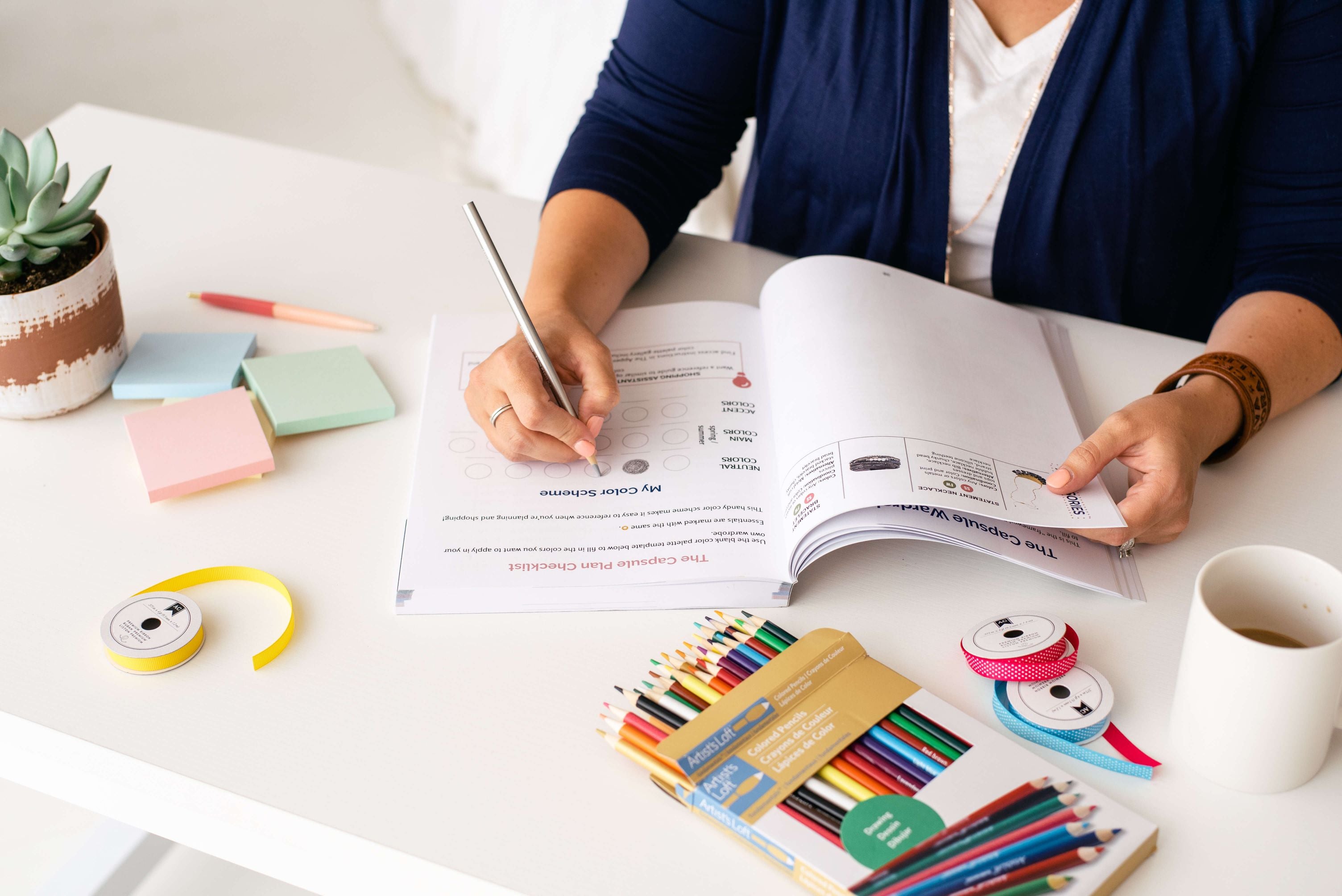 - Style Guide books and Outfit Calendars (eBook and hard copy options) that include wardrobe essentials checklists, capsule wardrobe frameworks, and done-for-you outfit templates.