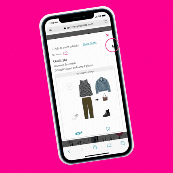- And if you want to take it to the next level, we also offer our Frump Fighters Interactive Platform — a customizable web app that turns our capsule wardrobe frameworks and outfit templates into something that fits your real life, like: